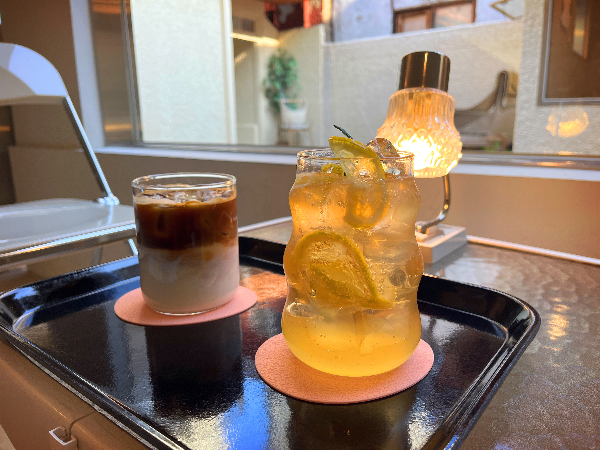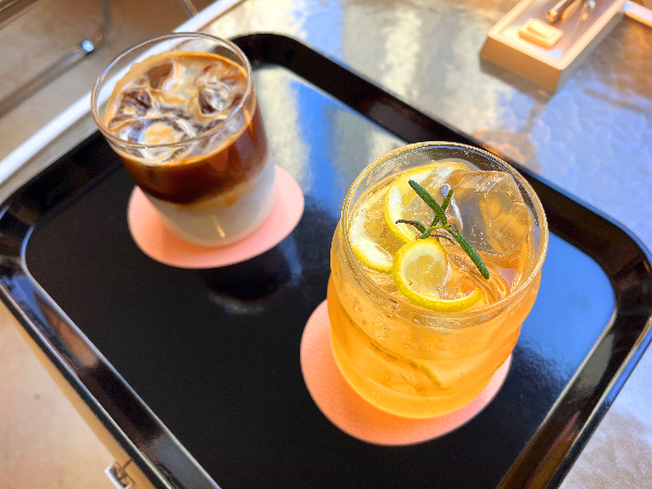 주문한 음료가 나왔습니다. 바닐라라떼와 레몬에이드입니다.