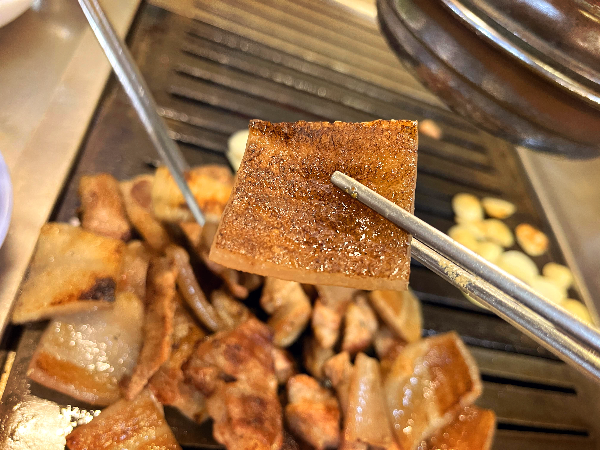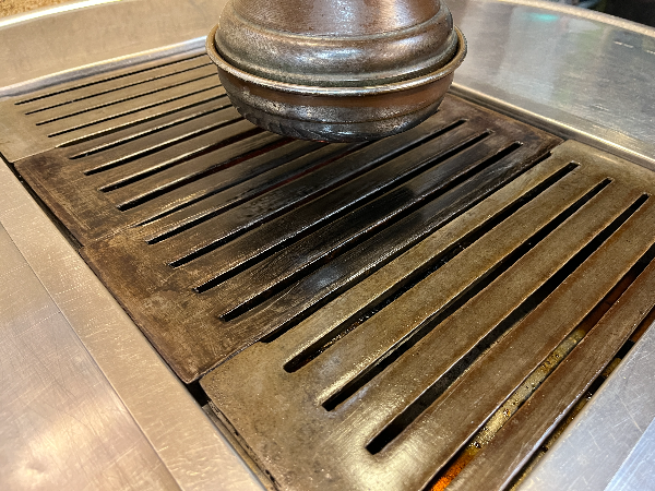 이곳의 고기가 맛있는 이유는 여러가지가 있지만 그중에 한가지로 연탄불과 이 두꺼운 철판에 있습니다. 은은하게 피어오르는 연탄불에 적당한 온도를 유지하는 철판이 고기를 잘 굽게 해주는 것 같습니다.