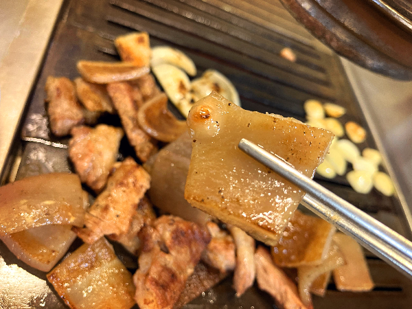 고기만 먹다가 질리면 껍데기도 한번 주문해봅니다. 껍데기도 초벌을 해서 나오기 때문에 오그라드는 껍데기를 잘 못 굽는 사람도 쉽게 구워 먹을 수 있습니다.