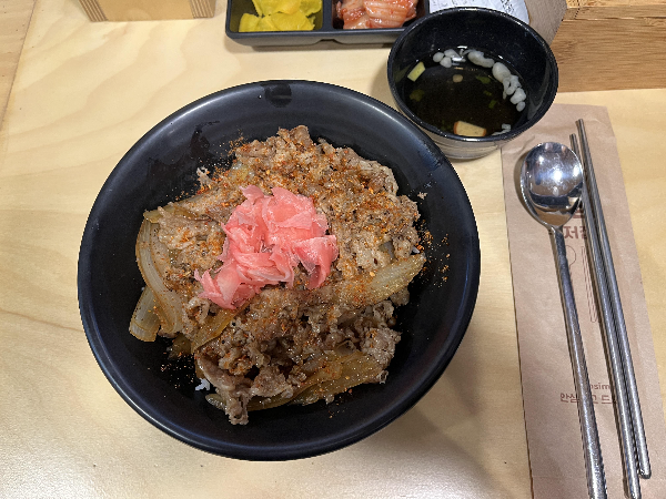 소고기덮밥(규동)을 먹어보았는데요. 생각보다 너무나 맛있게 잘 먹었습니다. 덮밥으로는 가격이 조금 아쉽게 느껴지지만 가끔은 먹을만한 것 같습니다. 소고기덮밥에서 의외의 맛있는 맛을 보고나니 다른 메뉴들도 궁금해졌습니다. 다음 방문 때 다른 메뉴도 먹어봐야겠습니다. 잘 먹었습니다.