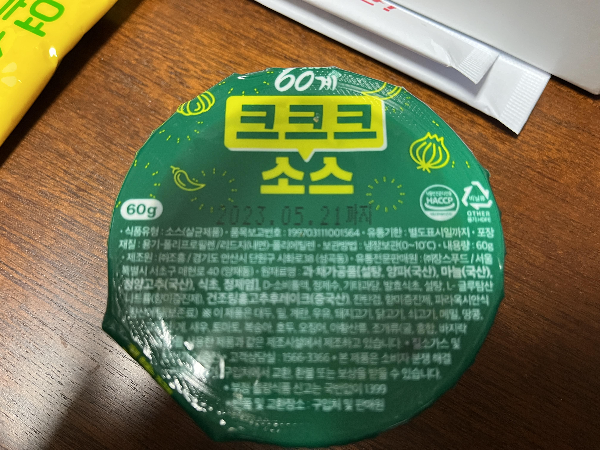 크크크소스를 열어보았습니다. 고추 양파 냄새가 확 났습니다. 바삭한 치킨에 느끼한 맛을 조금이라도 없애려는 것 같았습니다.