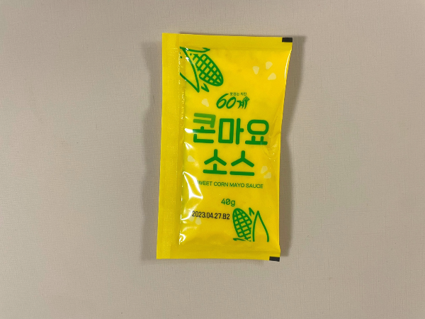콘마요소스 찍어서 먼저 먹어보았습니다. 옥수수 노란색의 진한 냄새가 좋았습니다.