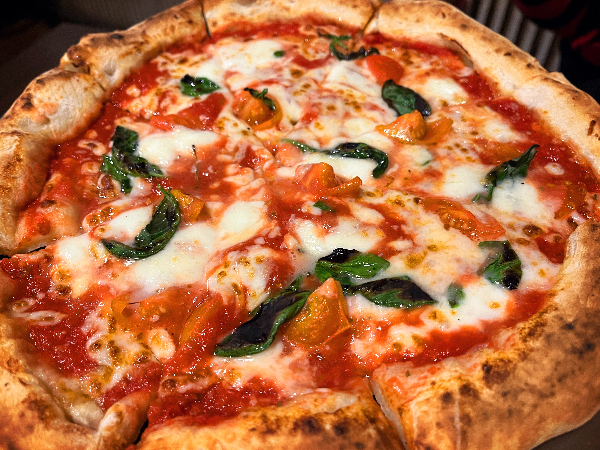 도우에 거뭇거뭇한 그을림이 화덕피자의 비주얼을 보여줍니다. 마르게리타 피자를 먹어보았습니다.