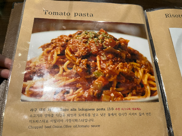 파스타는 무난한게 토마토파스타로 추천 시그니처 대표메뉴인 라구 미트 파스타로 선택하였습니다.