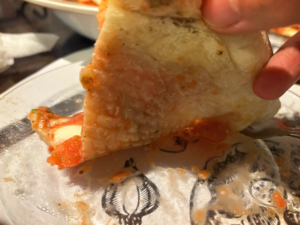 바닥이 축축하게 젖어서 토핑도 고정이 안되고 식감 또한 안좋았던 것 같습니다. 씬피자도 먹어보고 했지만 이렇게 젖어있어서 힘 없이 늘어지는 피자는 처음 먹어보는 것 같네요. 아쉬웠습니다.