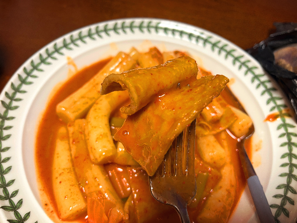 떡볶이 먼저 먹어보았습니다. 먹는 순간 초등학교 앞에서 먹던 떡볶이 맛이 스쳐 지나갔습니다. 특유의 조미료 맛이라고 할까요. 맛이 강하지는 않았지만 지금껏 먹어본 떡볶이 중에 초등학교 앞 떡볶이 맛과 가장 비슷한 맛이어서 정말 좋았습니다.