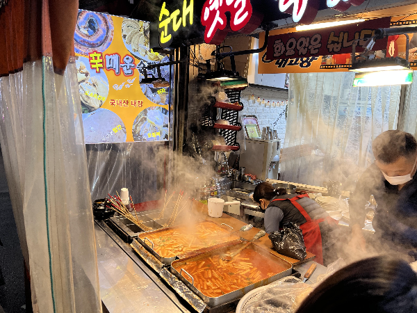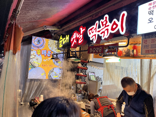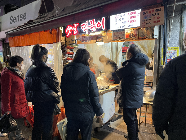 다른 가게들은 마감 준비를 하고 있는 것 같아 보였는데 이곳 순대 옛날 떡볶이 가게에서만 사람들이 긴 줄로 서서 기다리고 있었습니다.