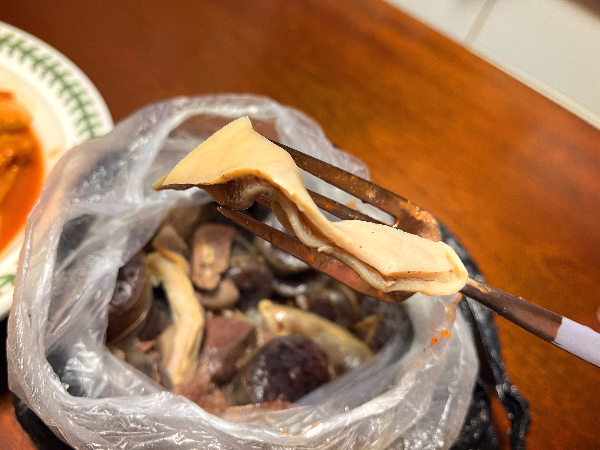 매운맛 순대를 먹어보았습니다. 눈으로 보았을 때는 일반 순대와 같아 보이지만 먹어보면 살짝 매콤한 맛이 느껴지는 순대입니다. 매운맛이 확 강하진 않아서 모르고 먹으면 일반 순대 같기도 한데요. 계속 먹다보면 느끼하고 질리는 맛이 느껴지는 일반 순대와 달리 매운맛 순대라서 먹어도먹어도 질리지 않게 먹을 수 있는 순대 맛입니다.