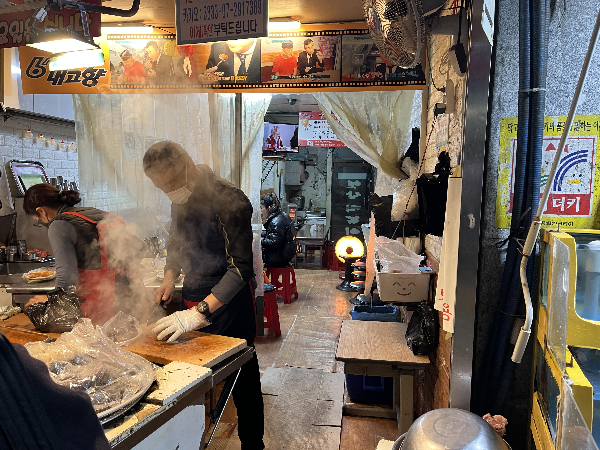 아주머니는 떡볶이 담당, 아저씨는 순대 담당인 것 같은데요. 순대 썰어주시는 손놀림도 빠르고 재치있는 입담도 있으시고 손님 줄이 길어서인지 즐거운 모습이셨습니다.
