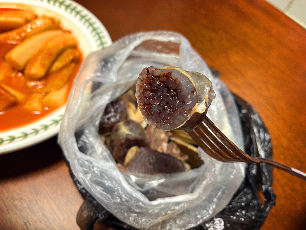 저희 차례가 되어서 순대를 주문하였습니다. 아내 분이 이곳의 순대를 좋아하는 이유는 특별한 순대로 매운맛 순대가 있어서 좋아합니다. 순대에 고추라도 넣었나 생각되었는데요. 눈으로 보기에는 보통 순대가 똑같이 생겼습니다. 매번 먹던 매운맛 순대를 주문하고 오늘은 처음으로 떡볶이가 먹어보고 싶다며 떡볶이도 같이 포장 주문을 하였습니다.