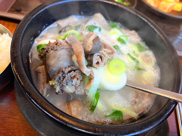 오랜만에 순대국에서 고소한 맛을 느껴서 너무나 좋았습니다. 담백하고 깔끔한 순대국이 너무나 맛있었습니다. 부속고기는 많았지만 순대가 달랑 2개뿐인 것이 조금 아쉬웠습니다. 다음에는 순대만 따로 주문해서 먹어보기도 해봐야겠습니다. 맛있게 잘 먹었습니다.