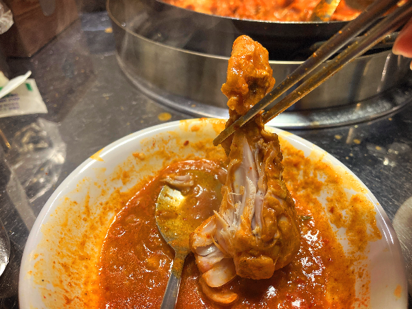 먹다보니 마지막으로 다리와 날개를 먹을 차례였습니다. 아내 분이 다리 하나를 양보해주셔서 먹게 되었습니다. 닭다리를 보니 닭도 작지 않은 크기로 살이 실하게 붙어 있고 마지막까지 더욱 맛있게 먹을 수 있었습니다.