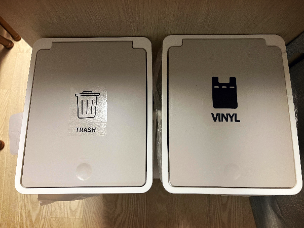 기존에 있던 쓰레기통은 서로 구분 되도록 뚜껑의 색깔이 달랐는데 이번에 주문한 쓰레기통은 색을 선택하지 못해서 랜덤으로 받아보니 옆 짝꿍 쓰레기통과 같은 색이었습니다.