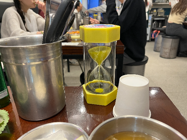 생각보다 빠르게 잘 익어가는 쭈곱새입니다. 모래시계 시간은 3분정도 되는 것 같았습니다.