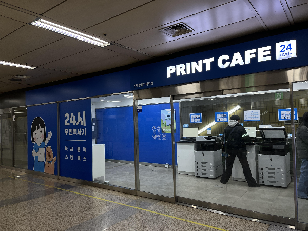 24시 무인복사가 가능한 프린트 카페였습니다. 요즘 지하철 역사 안에 종종 보이기 시작하는데요. 지하철역이라서 접근하기 편하고 24시간 언제나 이용 가능하니 시간 걱정없이 방문할 수 있어서 좋은 것 같습니다. 집에 프린터기가 없어도 될 만큼 괜찮은 것 같은데요. 없어지지 말고 계속 잘 이용할 수 있었으면 좋겠네요.
