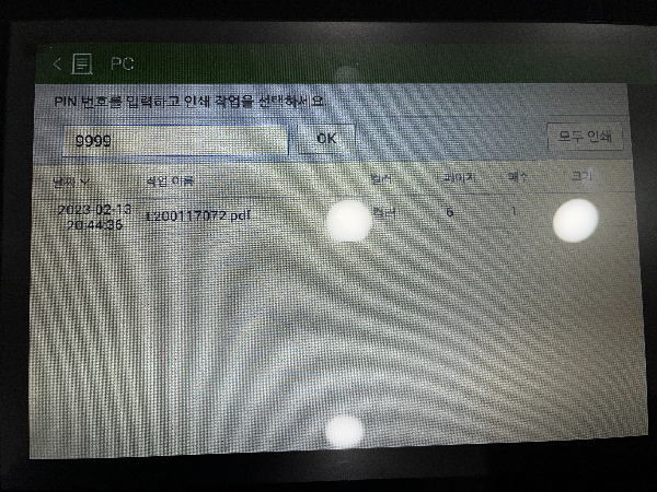 USB를 꽂으니 새로운 창이 뜨고 USB에 들어있는 인쇄할 문서 PDF파일을 열어서 인쇄를 눌러줍니다.