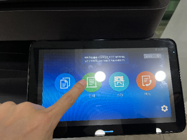 프린터기에 모니터 창이 있어서 제가 이용하려는 용도인 인쇄를 터치로 눌러줍니다.