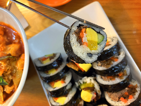 소고기김밥입니다. 아내 분이 가장 좋아하는 김밥입니다. 소고기 자체로 양념이 잘 되어 있어서 소고기 맛이 진하게 느껴졌습니다. 소고기 양념 맛에서 좌우되는 소고기김밥인데요. 채소들과도 잘 어울릴 정도로 적당하게 간이 되어있어서 괜찮았습니다.