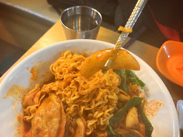 생각지도 못한 만두도 들어있었습니다. 바삭한 야끼만두를 생각했는데 라볶이 국물에 푹 담겨 있었더니 바삭함이 사라진 것 같았습니다. 조금 아쉬웠지만 국물이 쏙 베인 만두도 나름 맛있었습니다.