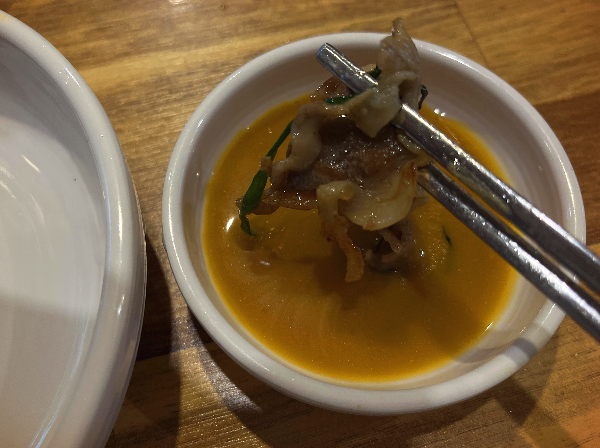 살코기와 지방이 잘 배분되어 있고 얇게 썰린 오리고기가 부드럽고 쫄깃한 식감을 만든 것 같았습니다. 고기가 얇다 보니 양이 조금 부족한 감도 있었지만 맛있게 먹었습니다.