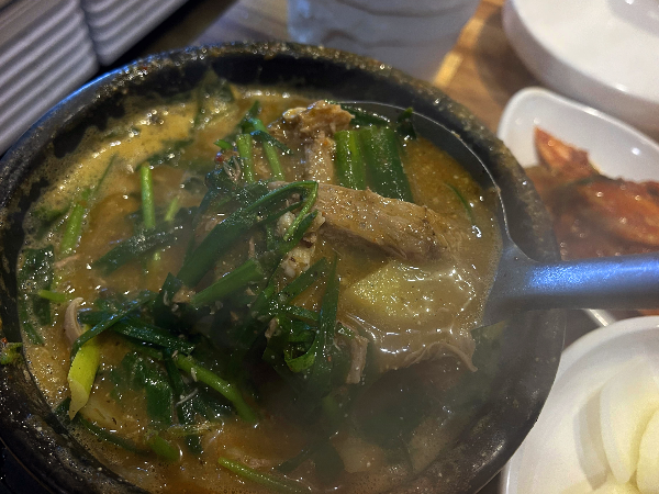 부추와 두툼한 살코기까지 보양식을 먹는 듯한 기분이었습니다. 오리감자탕이 왜 유명한지 알 것 같았습니다. 이 오리감자탕 뚝배기 하나만 먹어도 힘이 나고 굉장히 든든할 것 같았습니다.
