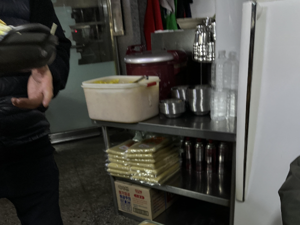 이곳에서의 밑반찬은 저기 하얀 통에 담긴 단무지 하나입니다. 중국집에서 짜장면과 같이 많이 먹지만 이곳에서도 손님들이 굉장히 많이 먹고 있었습니다. 포장 손님들은 단무지를 직접 봉지에 담아 가는데요. 떡볶이보다 단무지 양이 더 많아 보여서 조금 놀라기도 했습니다. 단무지 맛집처럼 보였습니다.