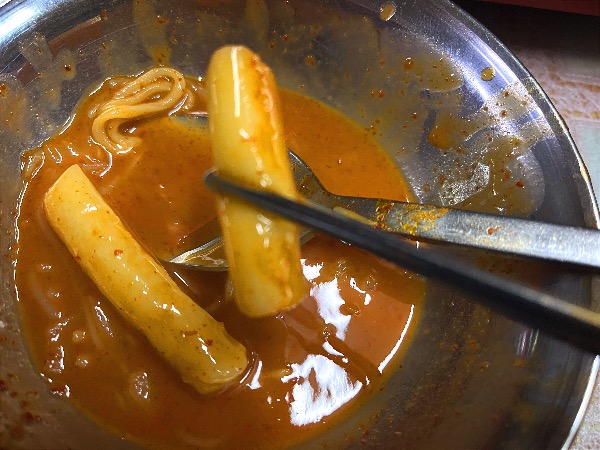 밑바닥에 숨겨져 있던 떡도 먹어보았습니다. 쫄깃한 떡이 밀떡으로 제 취향이었지만 사실 이도저도 아닌 맛에 조금 실망하게 되었습니다. 즉석떡볶이를 오랜만에 먹어서 그런건지 많이 아쉬웠습니다.