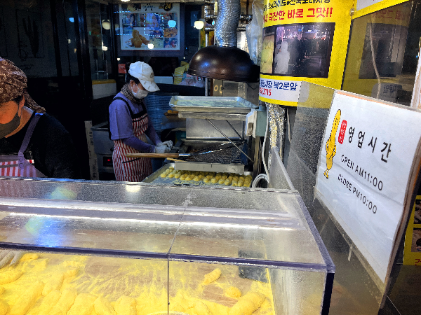 반죽이 다 되는대로 기계에서 열심히 튀기고 있으시고 각자 맡은 임무로 분업화가 되어 있어서 굉장히 빠르게 나오는 것 같습니다. 영업시간은 오전 11시부터 오후 10시까지로 굉장히 길었습니다. 손님들은 늦게까지 먹을 수 있어서 좋지만 일하시는 분들은 굉장히 힘드실 것 같습니다.