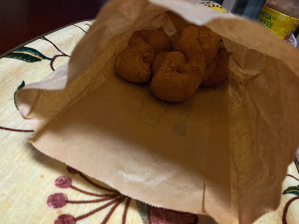 바삭하고 쫀득쫀득하면서 부드러운 반죽이 맛있었습니다. 시나몬향이 맛에서 크게 남지는 않지만 기름에 튀겨져서 느껴지는 기름 맛이 느끼하지 않도록 살짝 잡아주는 것 같았습니다.