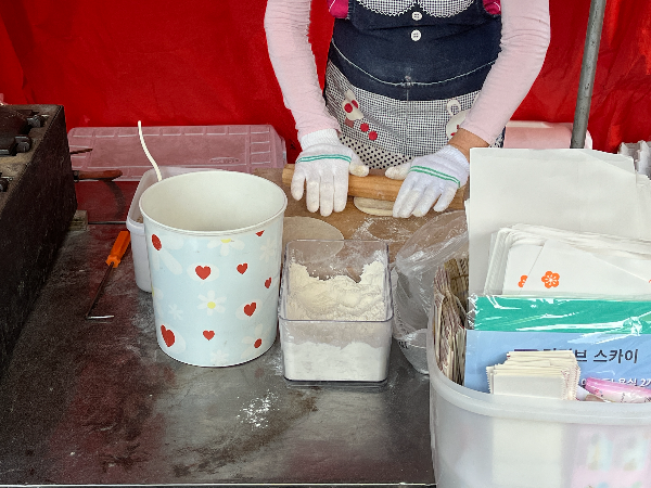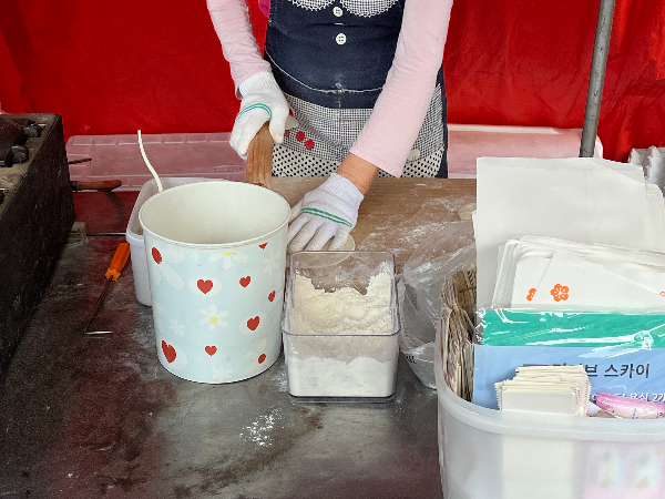 버블호떡을 미리 만들어 두지 않고 바로바로 만들어 주시는 것 같았습니다. 반죽부터 직접 하시는 모습이 더욱 기대가 되었습니다.