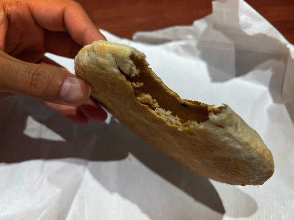 안쪽으로는 단맛이 살짝 느껴지고 뭔가 씹히는 게 견과류 같은 씨앗이 있는 것도 같았습니다. 역시나 달달하고 담백하니 맛있었습니다. 겉은 바삭하고 속은 찐득해서 한입 베었을 때 깨지듯이 부서지지는 않고 바삭한 식감에 부드럽게 먹을 수 있어서 좋았습니다.