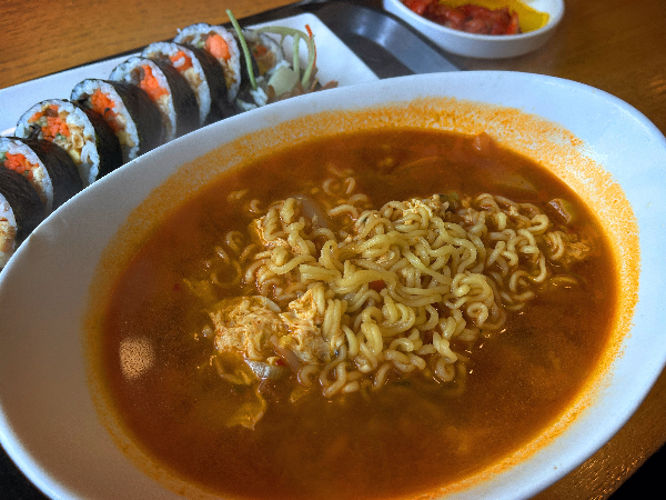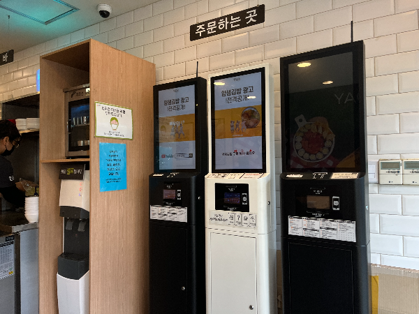주문은 키오스크로하고 셀프로 음식을 받아오는 시스템입니다. 김밥은 얌샘김밥으로 라면은 얌샘라면으로 주문하였습니다.