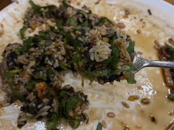 밥의 양보다 양념이 조금 많았던 것 같습니다. 밥을 더 주문하기에는 배부를 것 같고...