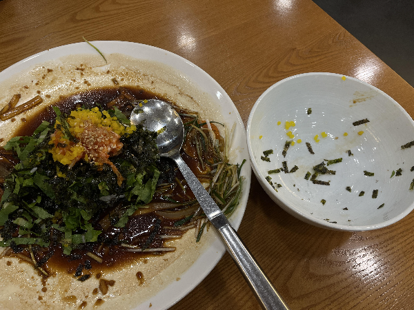 양념이 많아서 비빔밥이 부드럽게 잘 넘어갔습니다. 생각보다 짜지 않아서 나름 괜찮게 먹을 수 있었습니다.