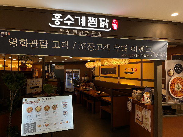 신림역 타임스트림 8층에 위치한 홍수계찜닭입니다. 집에서 가까운 영등포 타임스퀘어점 홍수계찜닭을 자주 방문했었는데요. 이번에는 새로운 곳인 이곳으로 오게 되었습니다.