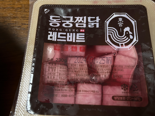 주문한 동궁찜닭입니다. 순살 황금찜닭 대(한마리반) 약간매운맛으로 주문하였습니다.