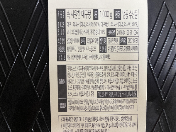 내용량 1,000g으로 3~4인분 양의 대구탕입니다. 양념도 증정하고 대구탕 레시피도 나와서 과감하게 도전해 보았습니다. 간편하게 든든하게 건강하게 속 시원한 대구탕인데요.