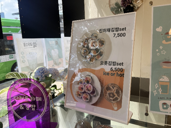 이곳을 찾게된 이유인 김밥 메뉴가 있습니다. 음료와 함께 세트메뉴가 구성되어 있었습니다. 아메리카노와 함께 구성된 진미채김밥set와 오롯김밥set입니다.