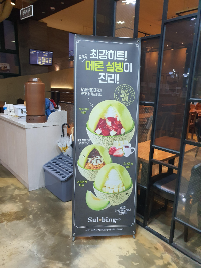 여름의 맛으로 메론홀릭 메론빙수를 주력으로 광고하고 있었는데요. 설빙의 여러 빙수를 먹어보았지만 그닥 입맛에 맞는 빙수가 많지는 않아서 그나마 가장 제 입맛에 맛있었던 인절미빙수만 계속 먹고 있었습니다. 아내분이 메론빙수가 여름 계절메뉴일 수도 있다고해서 메론빙수를 먹어보기로 하였습니다.