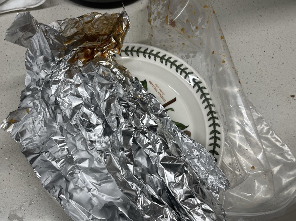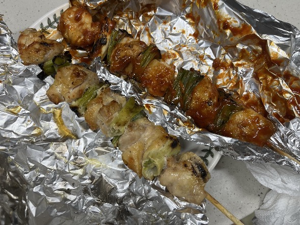포장된 닭꼬치를 집으로 가져왔습니다. 은박지에 한번 싸고 비닐 포장으로 이중포장해서 안전하게 주셨습니다.