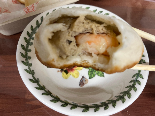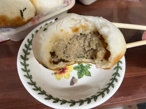 한입 먹어보았습니다. 촉촉한 고기가 듬뿍 들어있는 고기만두였습니다. 만두피는 부드러우면서도 두툼해서 만두라기보다 찐빵에 가까운 맛이었습니다.