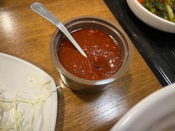 보리밥에는 고추장이 따로 나오는데요. 이 고추장이 별미입니다. 맵지 않고 너무 달지도 않은 적당한 소스의 고추장입니다.