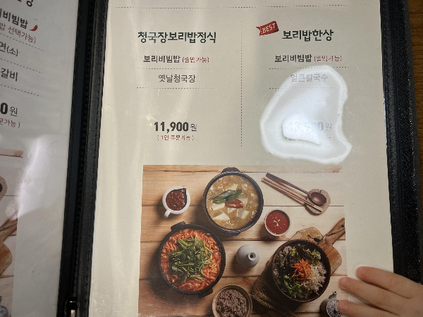 사월에 보리밥과 쭈꾸미 메뉴판입니다. 아내 분은 쭈꾸미정식 그리고 저는 청국장보리밥정식으로 주문하였습니다. 제가 주문한 청국장보리밥정식은 보리밥을 쌀밥으로 변경도 가능하다고 합니다.