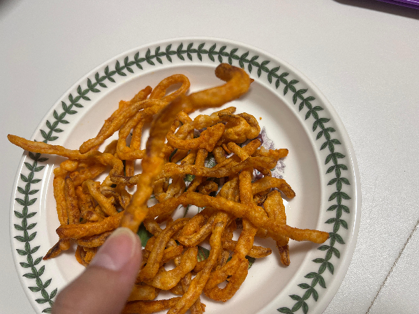 에어프라이어에 돌려주었더니 더욱 바삭해 보이고 냄새가 짬뽕 풍미를 더 살려준 것 같아 보였습니다.