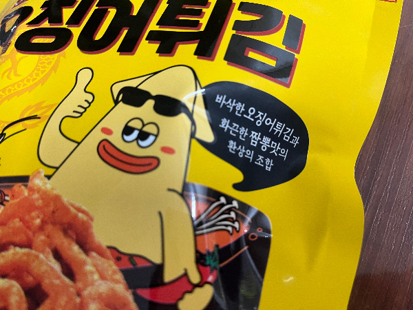바삭한 오징어튀김과 화끈한 짬뽕맛의 환상의 조합~ 오징어 캐릭터가 귀엽습니다.
