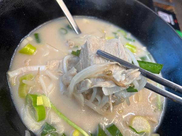 지방 부위보다 살코기 위주로 들어있는 고기도 얇게 썰려 있어서 퍽퍽하지 않고 적당한 식감에 맛있었습니다. 다소 퍽퍽할 수 있는 고기를 얇게 썰어낸 것도 좋았지만 고기 자체도 부드러운 고기인 것 같았습니다.