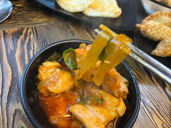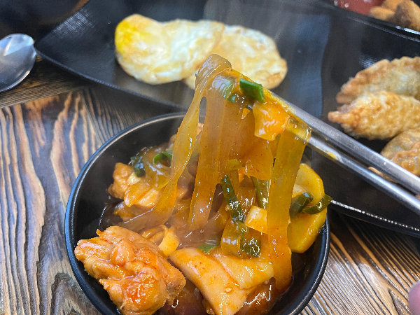찜닭에 들어있는 중국당면이 정말 맛있었는데요. 양념이 완전 제대로 배어 있어서 쫄깃한 맛에 양념이 최고였습니다. 순살로 나온 닭은 닭꼬치나 닭갈비에 들어있는 닭을 사용한 것 같은데요. 적당히 잘 익고 다리살을 먹는 것처럼 부드럽고 너무나 맛있었습니다.