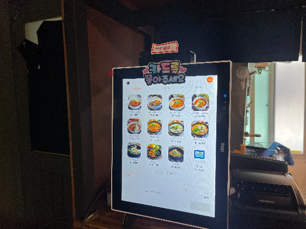 먼저 키오스크에서 메뉴를 정하고 선결제를 해야 합니다. 저희는 로제찜닭(순살)과 사골고기국수로 정했습니다. 1인세트 메뉴에는 튀김만두가 추가되어있으니 사이드 메뉴로도 좋은 것 같습니다.