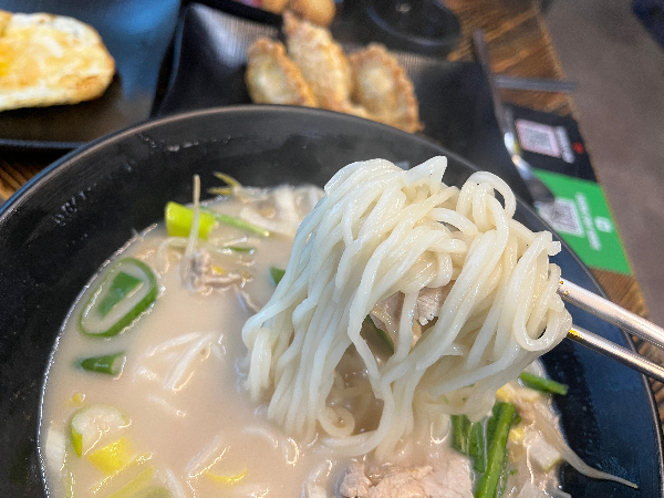 먼저 맛이 강하지 않은 사골고기국수부터 먹어보았습니다. 중면 같은 면발은 부드러우면서 쫄깃했습니다. 적당히 잘 삶아진 면발에 사골고기국수의 국물은 진하면서도 슴슴한 맛이 너무나 좋았습니다. 제주도 고기국수를 좋아하는 아내 분이 생각났는데요. 제주도 고기국수와 비교하면 덜 자극적이어서 아마도 후추를 엄청 넣어서 먹었을 것 같다는 생각이 들었습니다. 저는 제 입맛에 맞게 자극적이지 않고 담백하게 맛있었습니다.