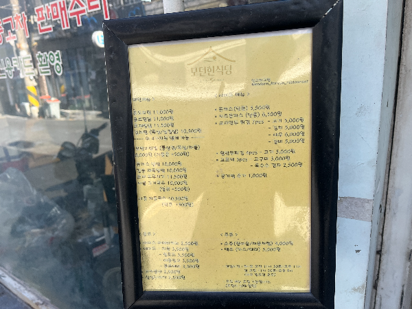 1층에 메뉴판이 있었는데요. 글씨가 너무 작아서 눈에 띄지는 않았습니다. 몇개의 대표 메뉴로 그림과 함께 넣어주면 더 좋지 않을까 생각했습니다.